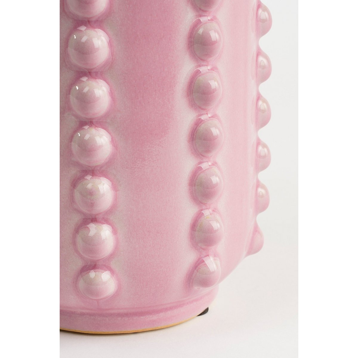 Deze vaas is een vrolijke en tegelijk stijlvolle toevoeging aan ieder interieur. De roze vaas is gemaakt van stevig keramiek en valt op door de gebobbelde structuur aan de zijkant. De vaas is 100% handgemaakt en hierdoor uniek, een echte blikvanger! Met een hoogte van 30 cm en een diameter van 11 cm is deze vaas ideaal voor bloemen, siertakken of pluimen. Ook leuk om te combineren met meerdere gekleurde vazen of potten. |Let op: Omdat dit een handgemaakt product is, kan de kleur, maat of vorm bij ieder item iets afwijken. Daarnaast zijn keramieken vazen poreus en nooit 100% waterdicht.